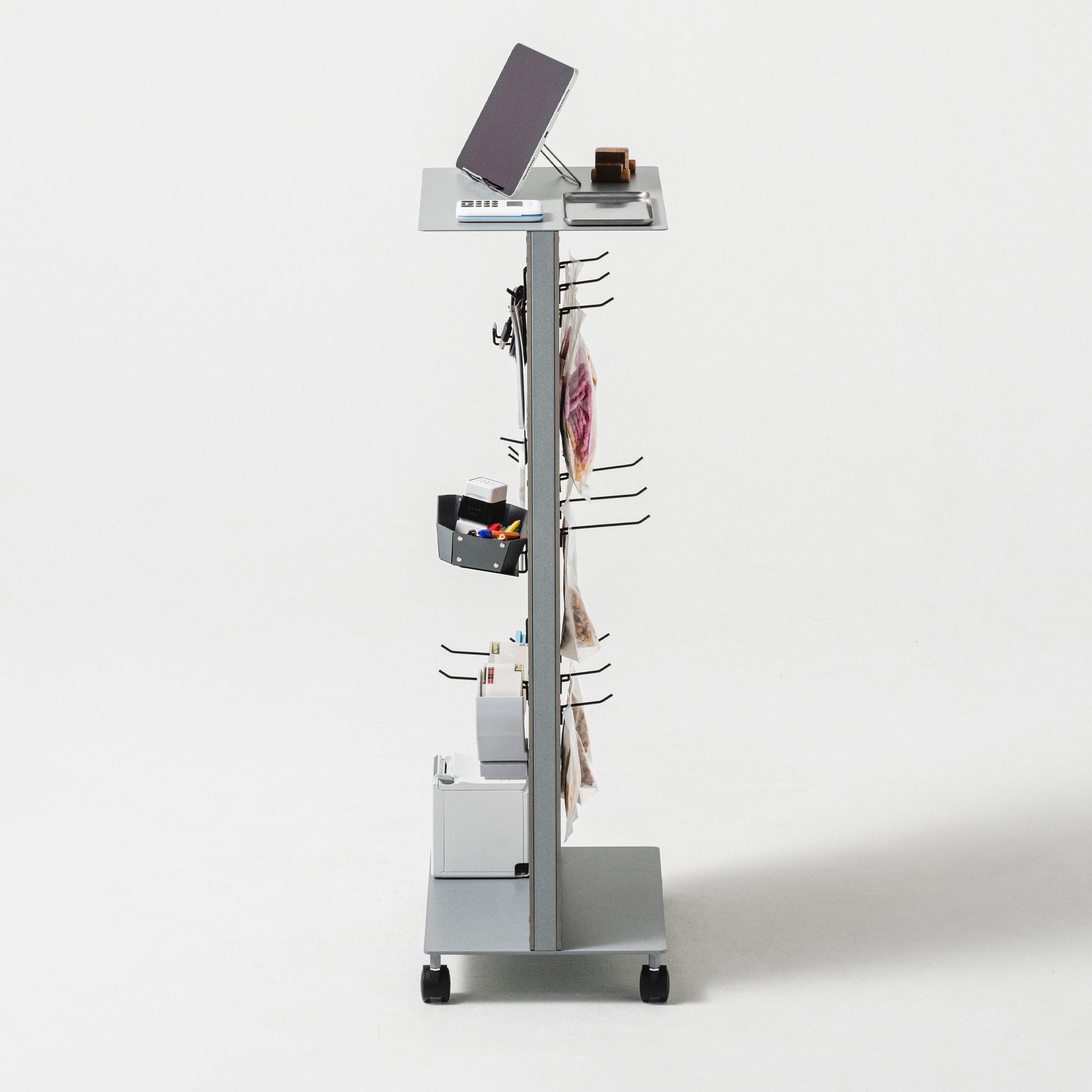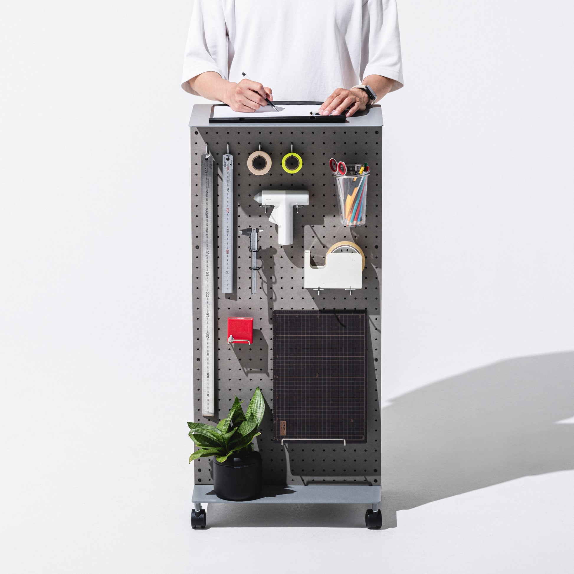 キャスター付きなので表面と裏面をクルッと入れ替えることができ道具類をそのまま作業場所まで動かすこともできます。
