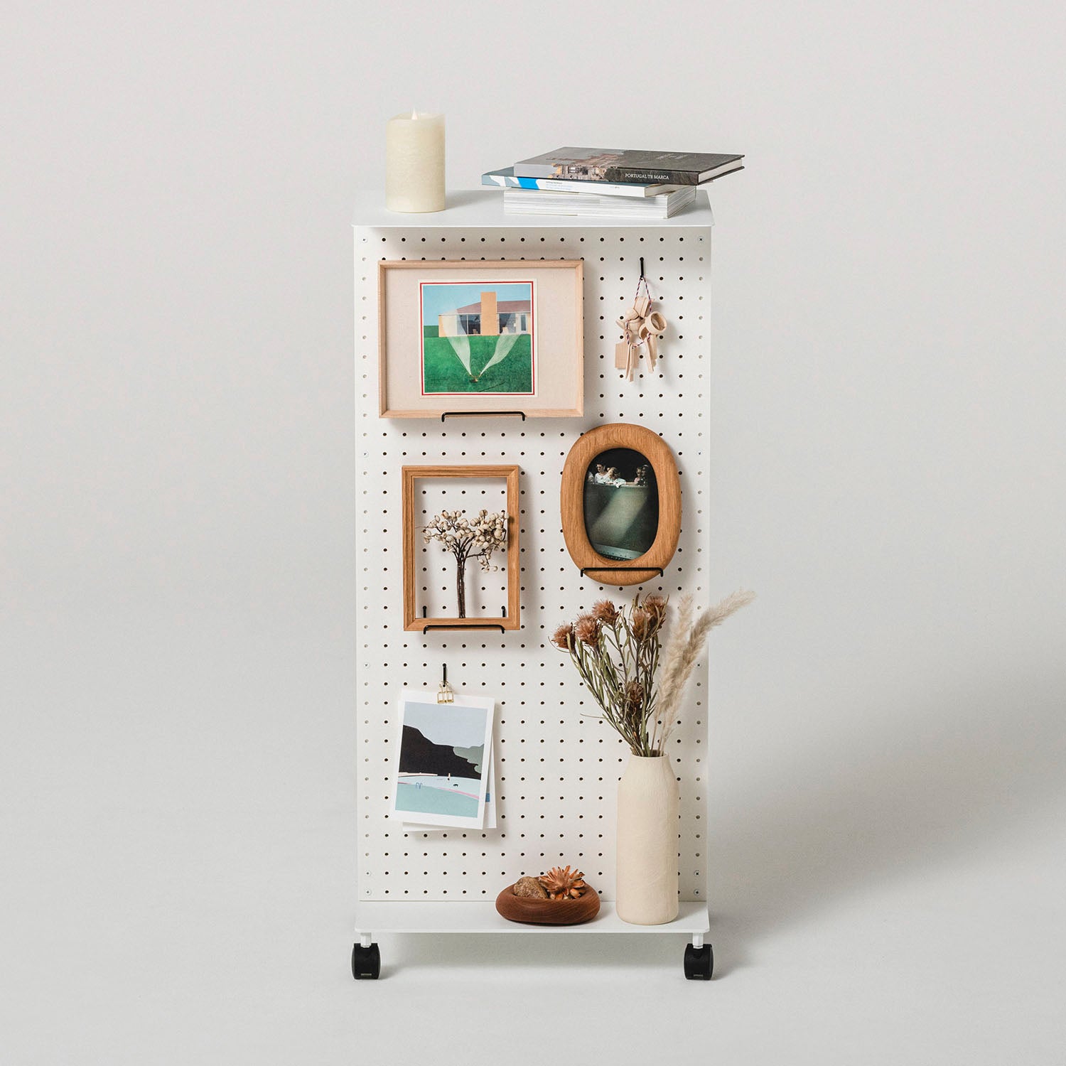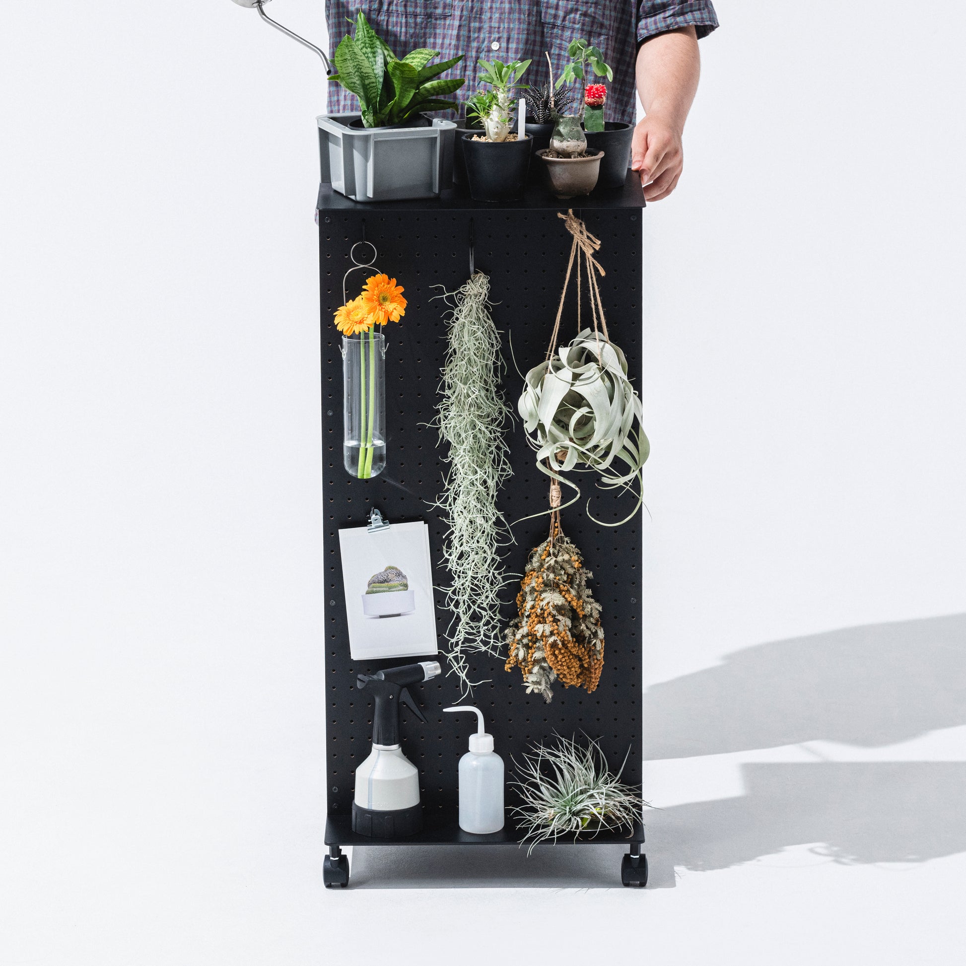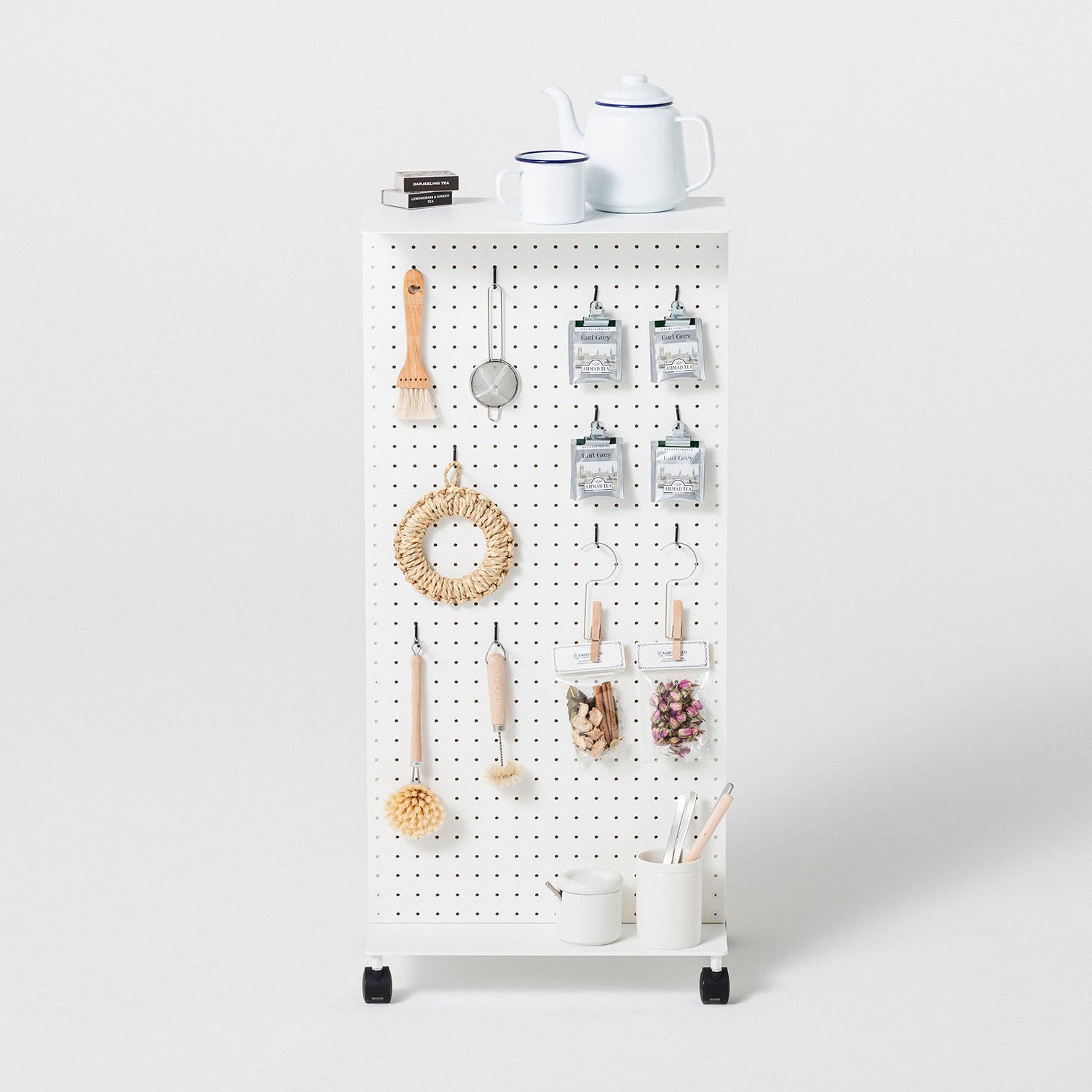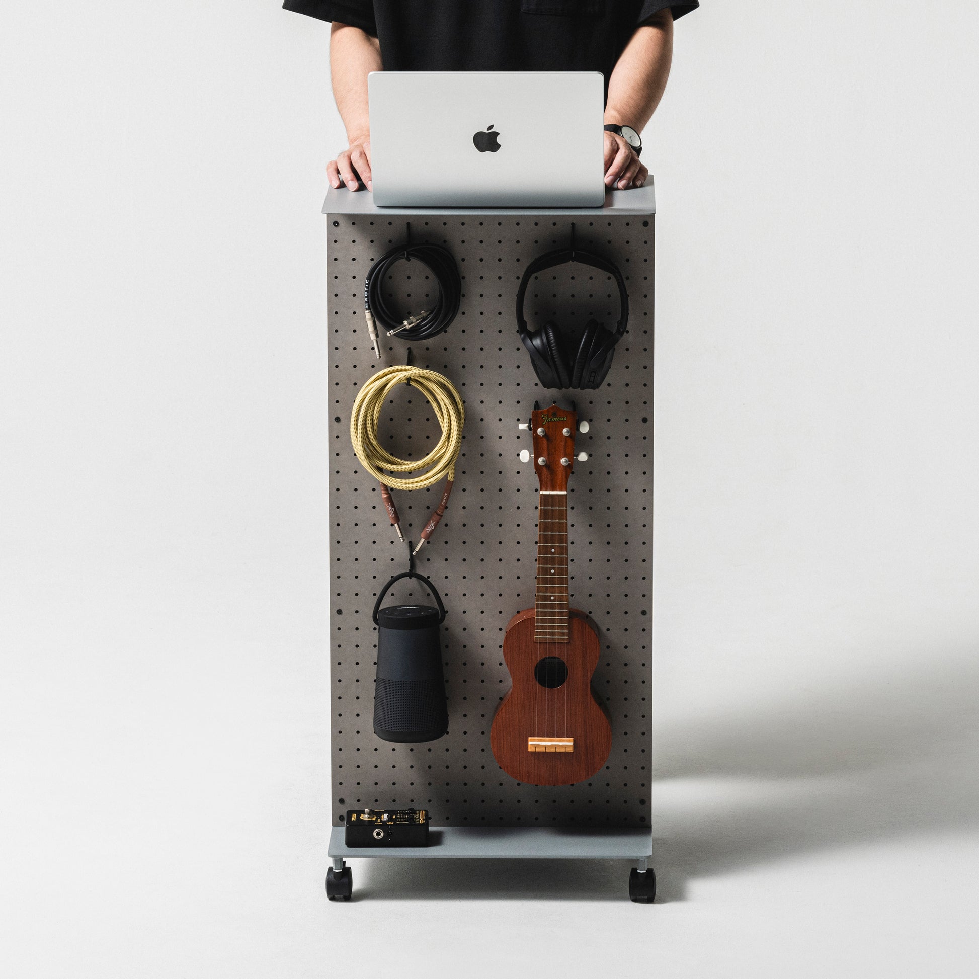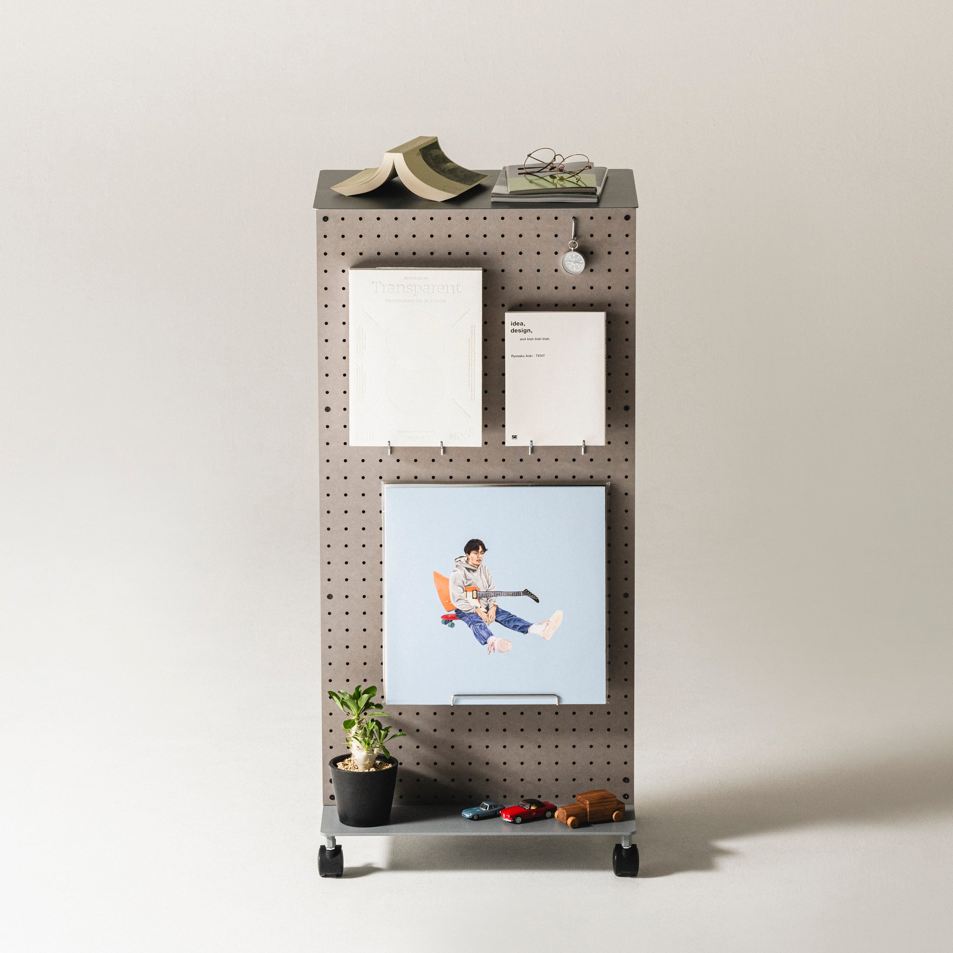 有孔ボードにフックなど様々なパーツをとりつけて、工具や文具はもちろん、鞄やリュック、鍵や財布や帽子、ガジェットやケーブル類を整理収納できます。