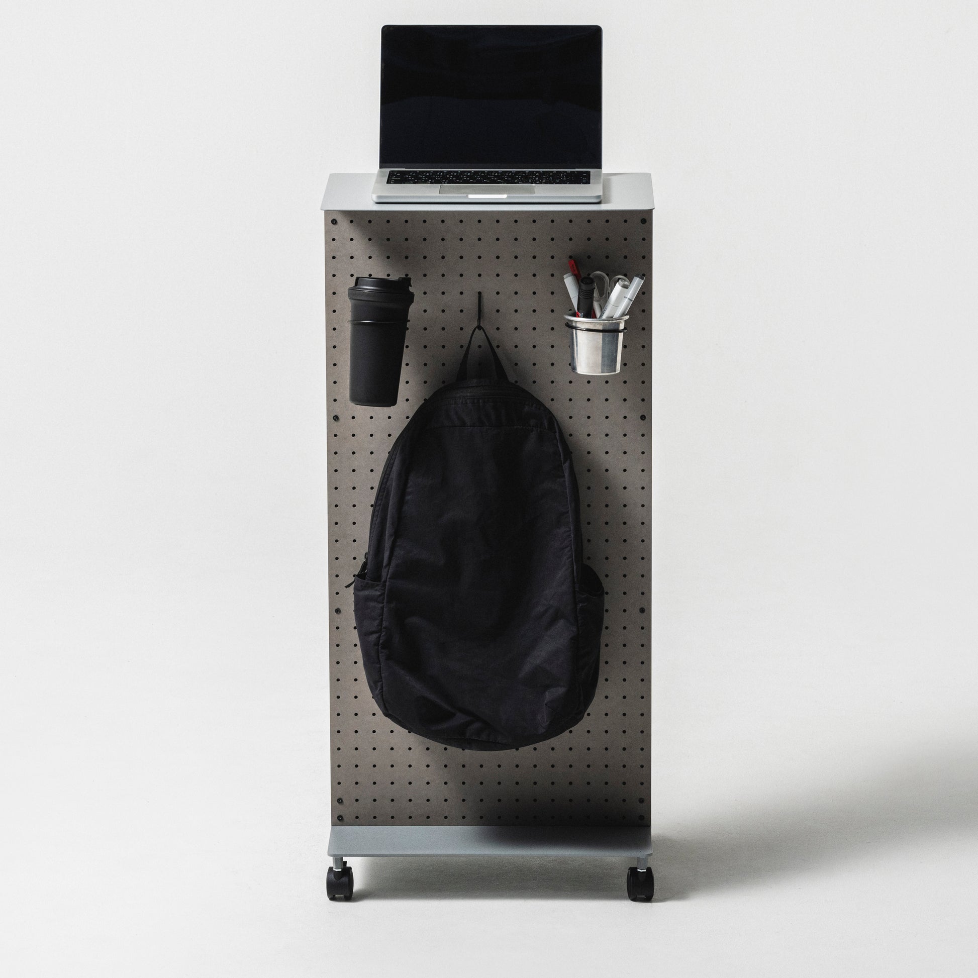 天面にはノートパソコンやタブレットを置けるため、スタンディングデスクとして使用可能。好きな場所へ移動させられるので在宅ワークでの気分転換にも最適。